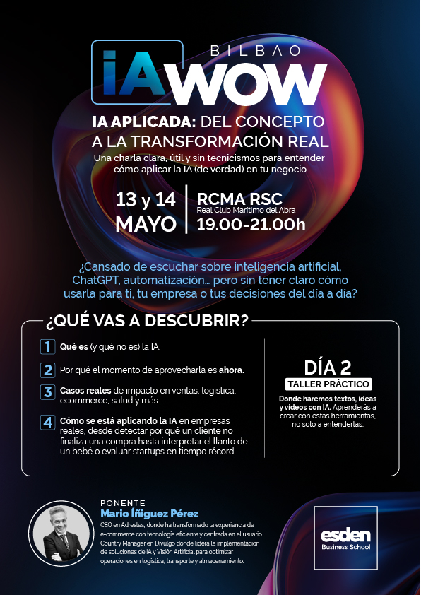 Una charla útil y sin tecnicismos para entender cómo aplicar la IA (de verdad) a tu negocio. De la mano de Mario Íñiguez, CEO en Adresles y Country Manager en Divulgo.