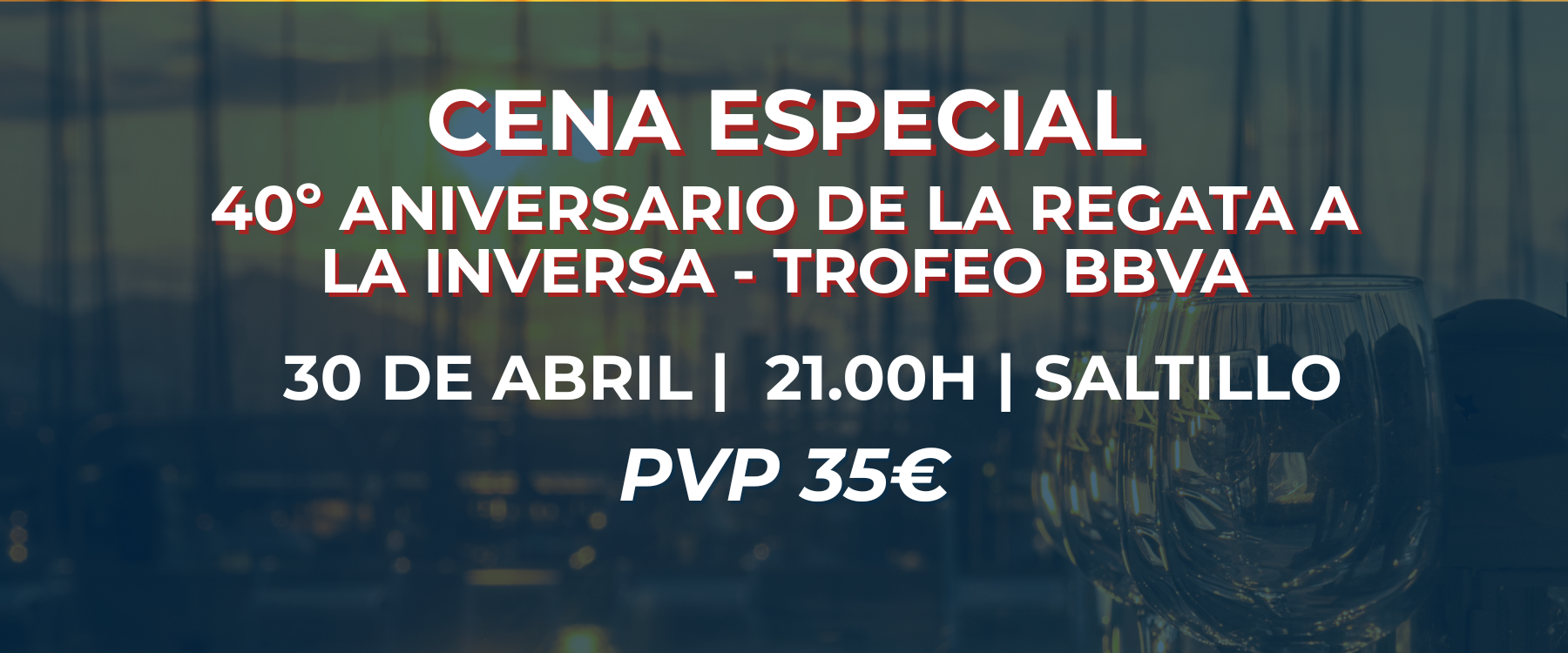 Con motivo del 40º aniversario de la Regata a la Inversa – Trofeo BBVA, el próximo miércoles 30 de abril celebraremos una cena en el Saltillo. Será una ocasión especial en la que contaremos con la presencia de Julio Alegría, figura clave en los inicios de esta emblemática regata y primer patrocinador junto al Club. Una cena distendida, ideal para compartir recuerdos, tras la que habrá copas y música para quienes quieran alargar la velada.