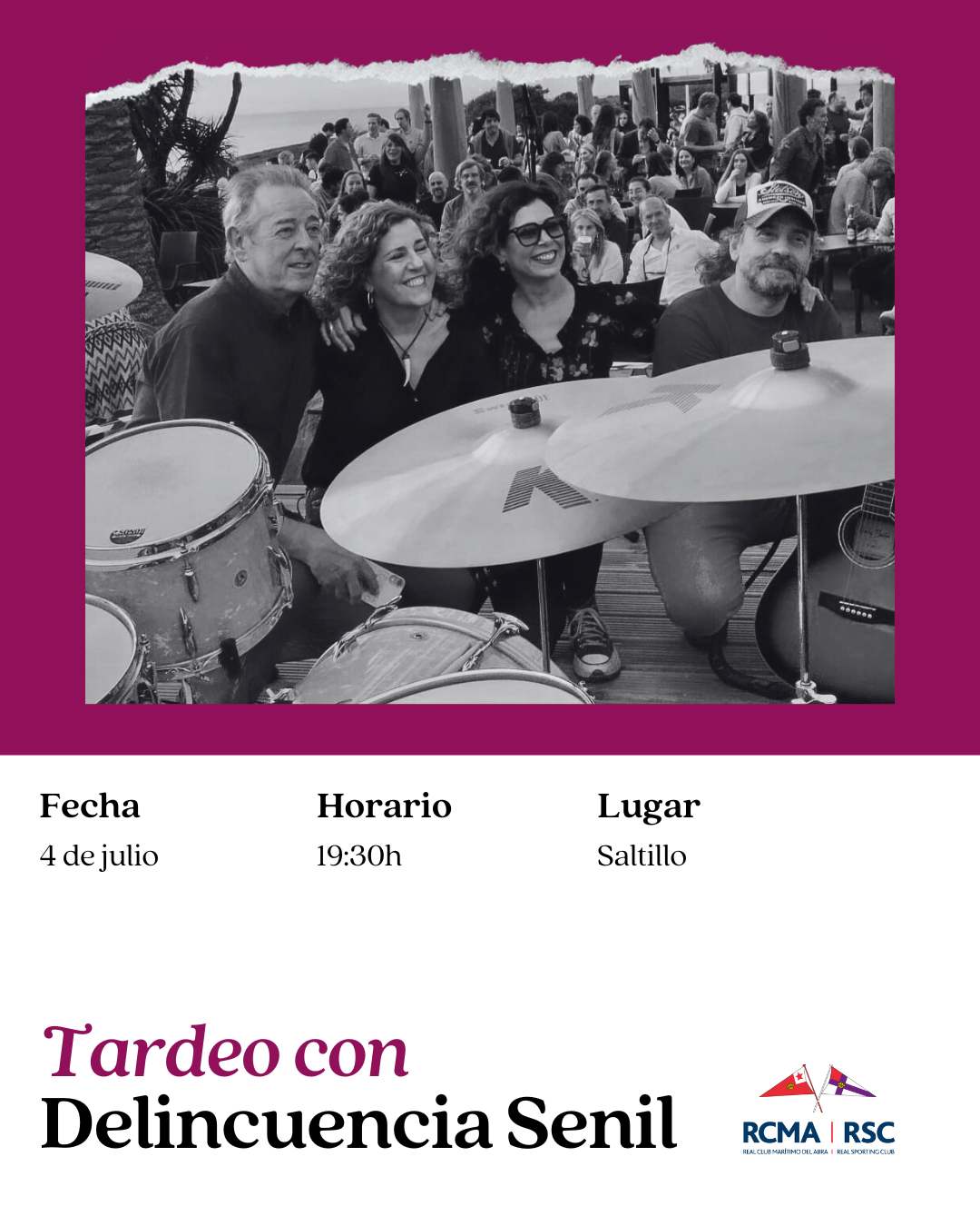 El viernes 4 de julio contaremos con la actuación en directo de Delincuencia Senil en el Saltillo a partir de las 19.30h. Una cita para disfrutar de una tarde distendida, con música en vivo y un ambiente inmejorable.