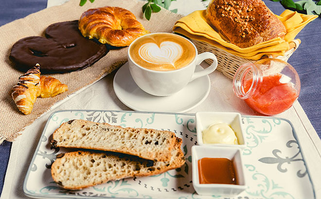 Desde las 10:30h podrás disfrutar de bollería recién horneada, tostadas y una suculenta barra de pinchos para hacer que tu día sea perfecto.