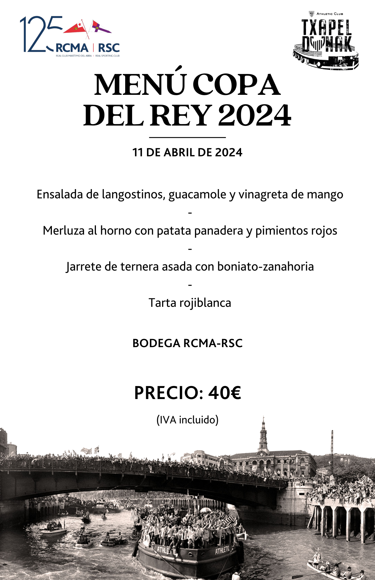 Restaurante: El comedor de diario queda abierto para reserva de mesas con el Menú Copa del Rey a un precio de 40€ (IVA incluído). Las reservas, exclusivas para socios y con aforo limitado. Horario: 14:00h a 16:00h